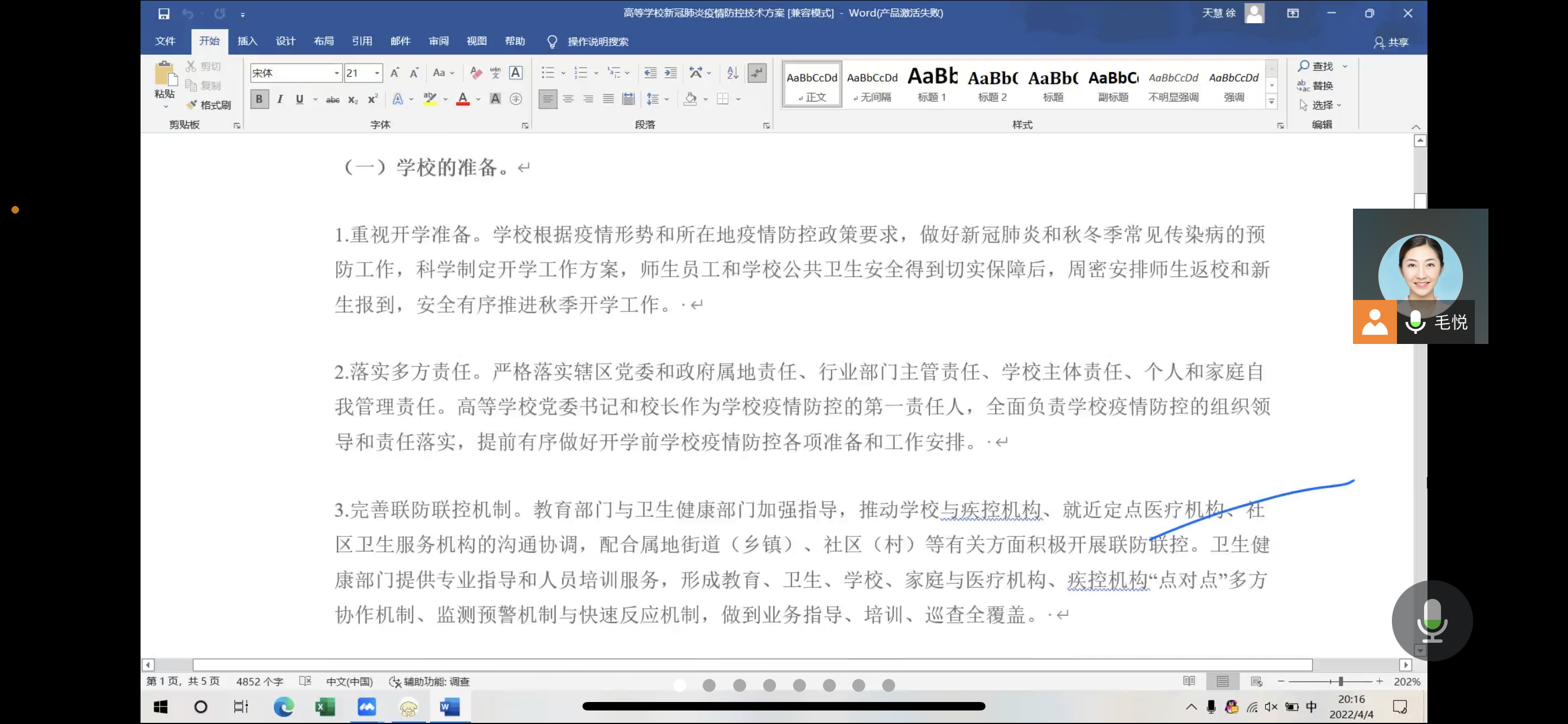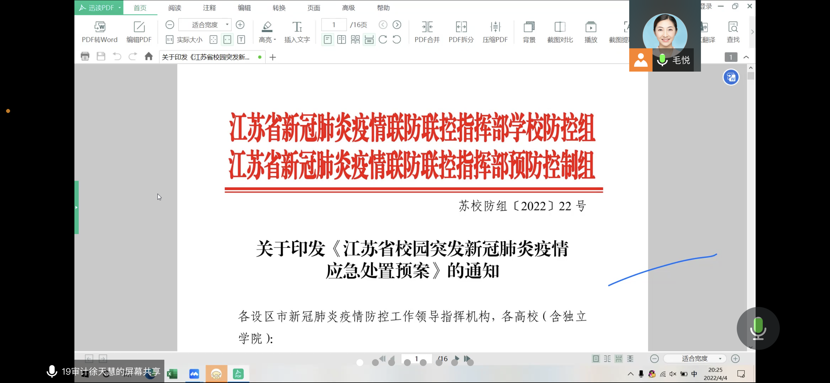 为进一步做好学校新冠肺炎应急处置工作,2022年4月4日下午,班主任毛悦在线上和线下同时开展疫情应急处置主题教育活动,活动由19级和20级的疫情信息员、宣传委员、组织委员参与组织。