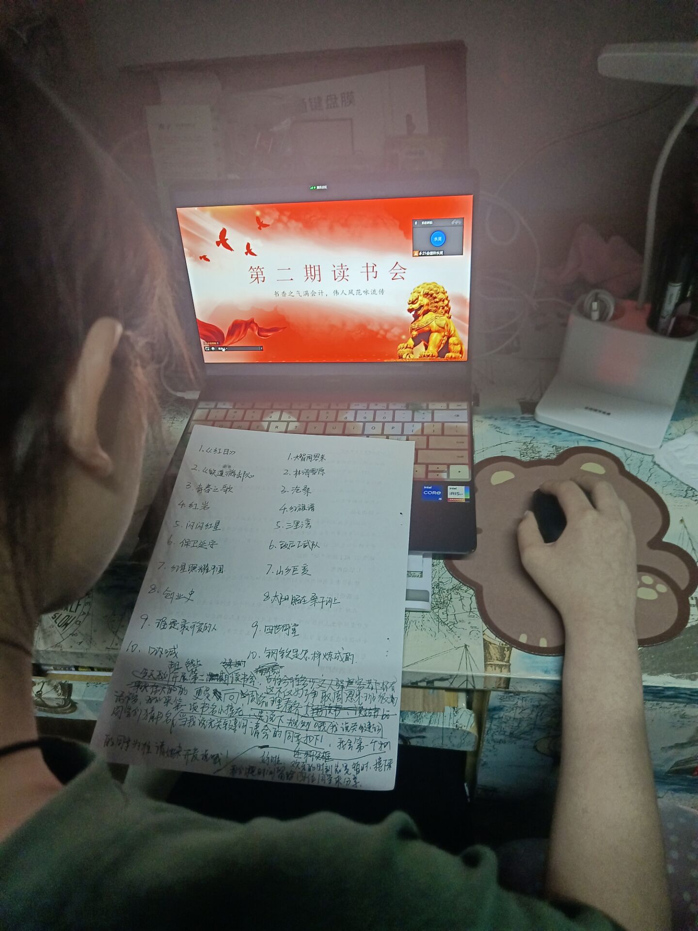 富有诗书气自华,最能能致远是书香。活动开始,同学们根据主持人所给的“爱国、红色基因”等一系列书籍关键提示词推进活动进程。围绕《大智周恩来》一书,大家将周恩来总理的一生事迹细细叙述来。在活动中,我们不仅是享受一场精神上的盛宴,更是引导我们学生不忘初心,学习周恩来总理的崇高精神、高尚品德和伟大风范。也有同学分享了《红岩》、《青春之歌》、《周恩来:永远的榜样》、《红星照耀中国》以及《保卫延安》等书籍。一个下午的时间里,四十个人的屏幕上开展了一次穿越时空、与伟人对话的交流,同学们也积极地写下自己参与读书会的感悟。
