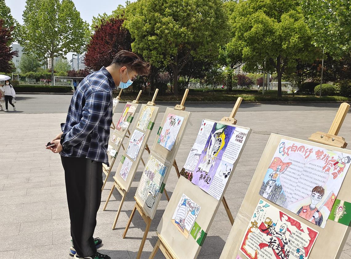 赛后,系列作品面向全校师生于校园内进行了集中展示。作品获得了广大师生的一致好评,作品宣扬的“抗疫有我,风雨同舟”的抗疫精神强烈地感染了观摩师生,大家纷纷表达了对抗疫一线工作人员及志愿者的敬意和“同心抗疫,中国必胜”的抗疫决心!