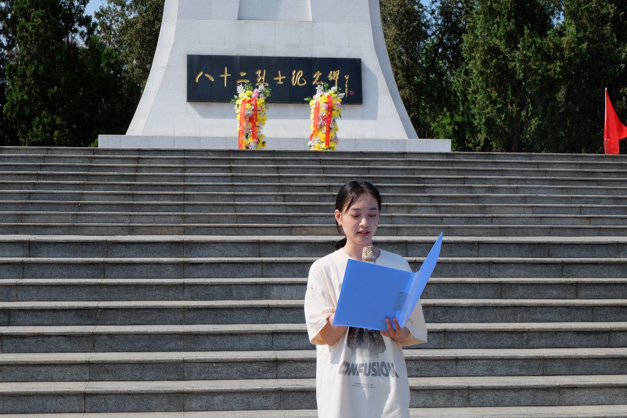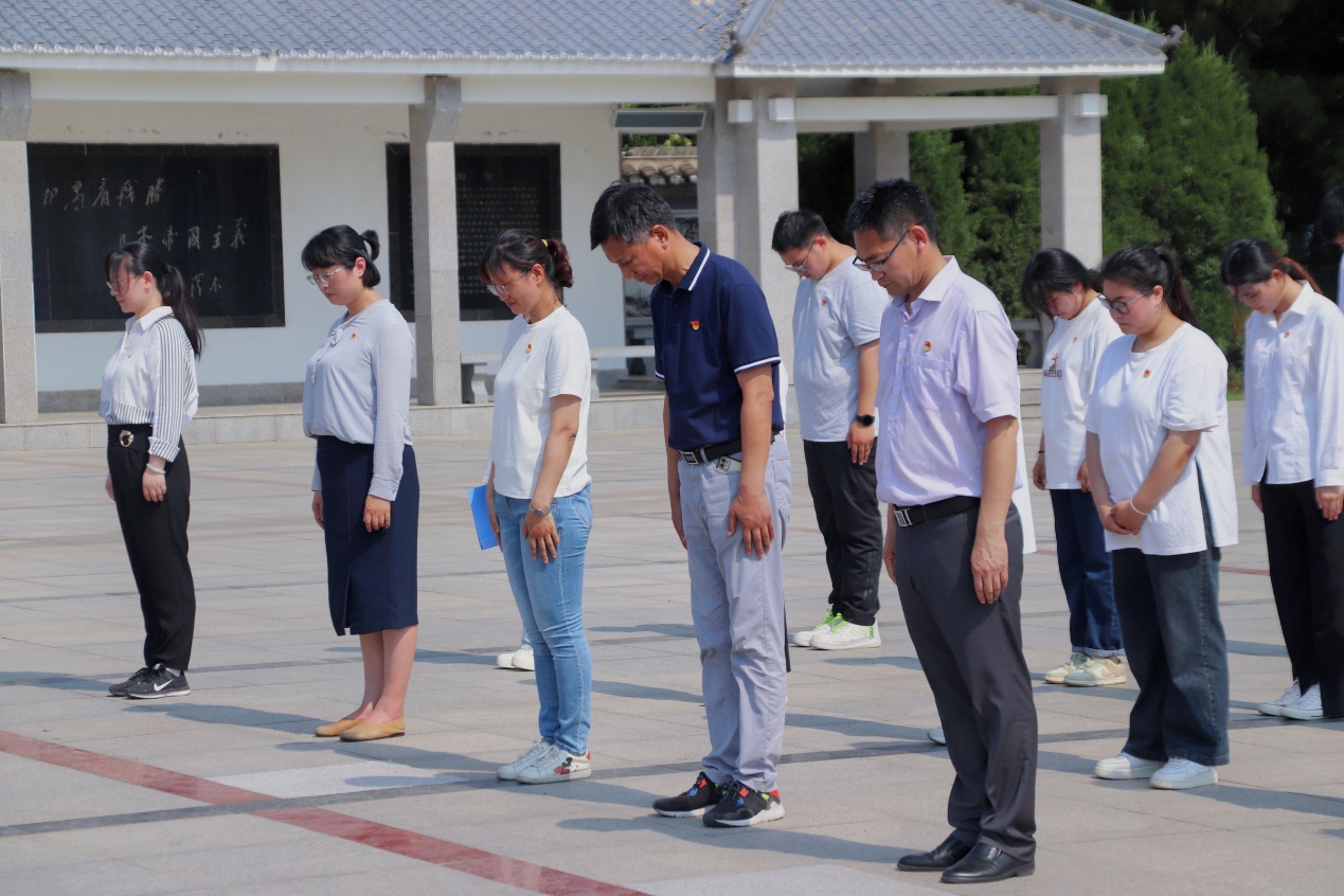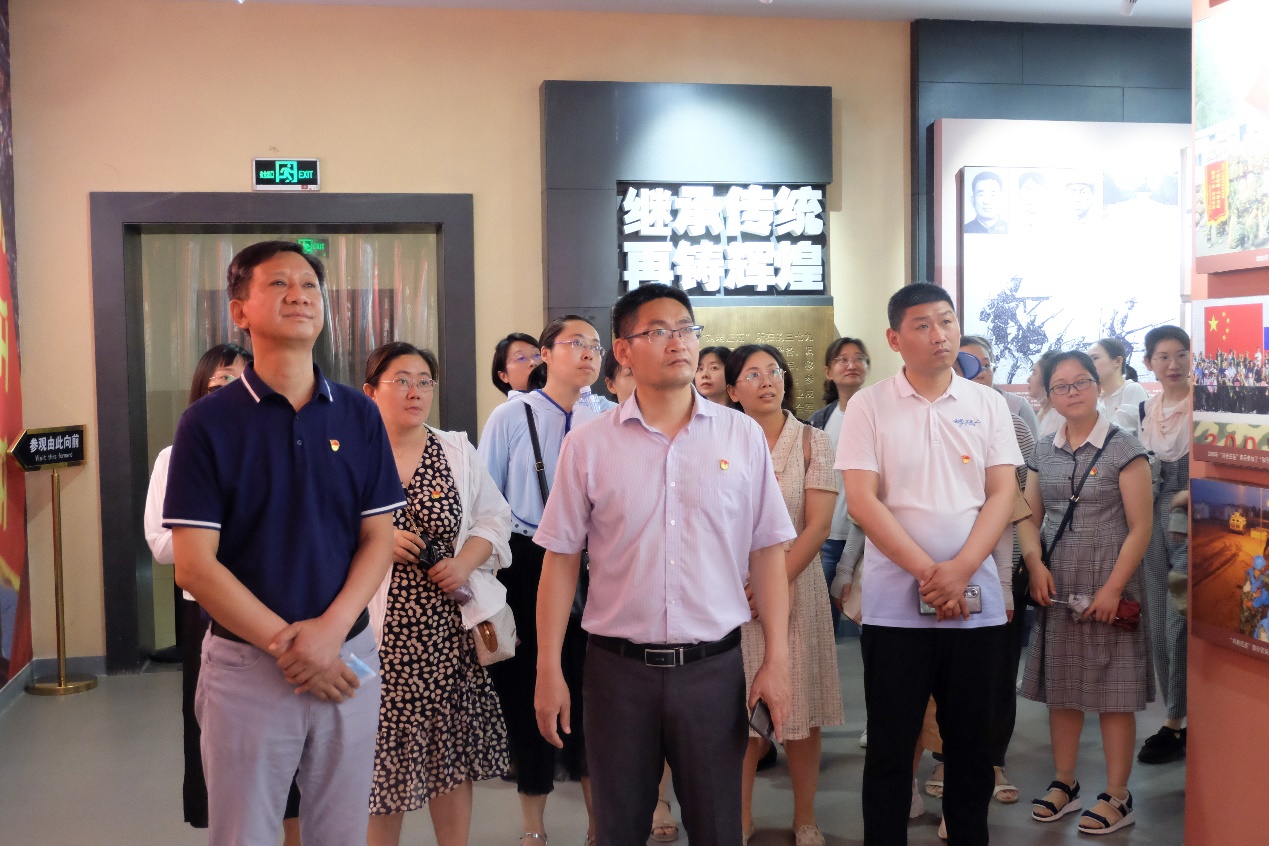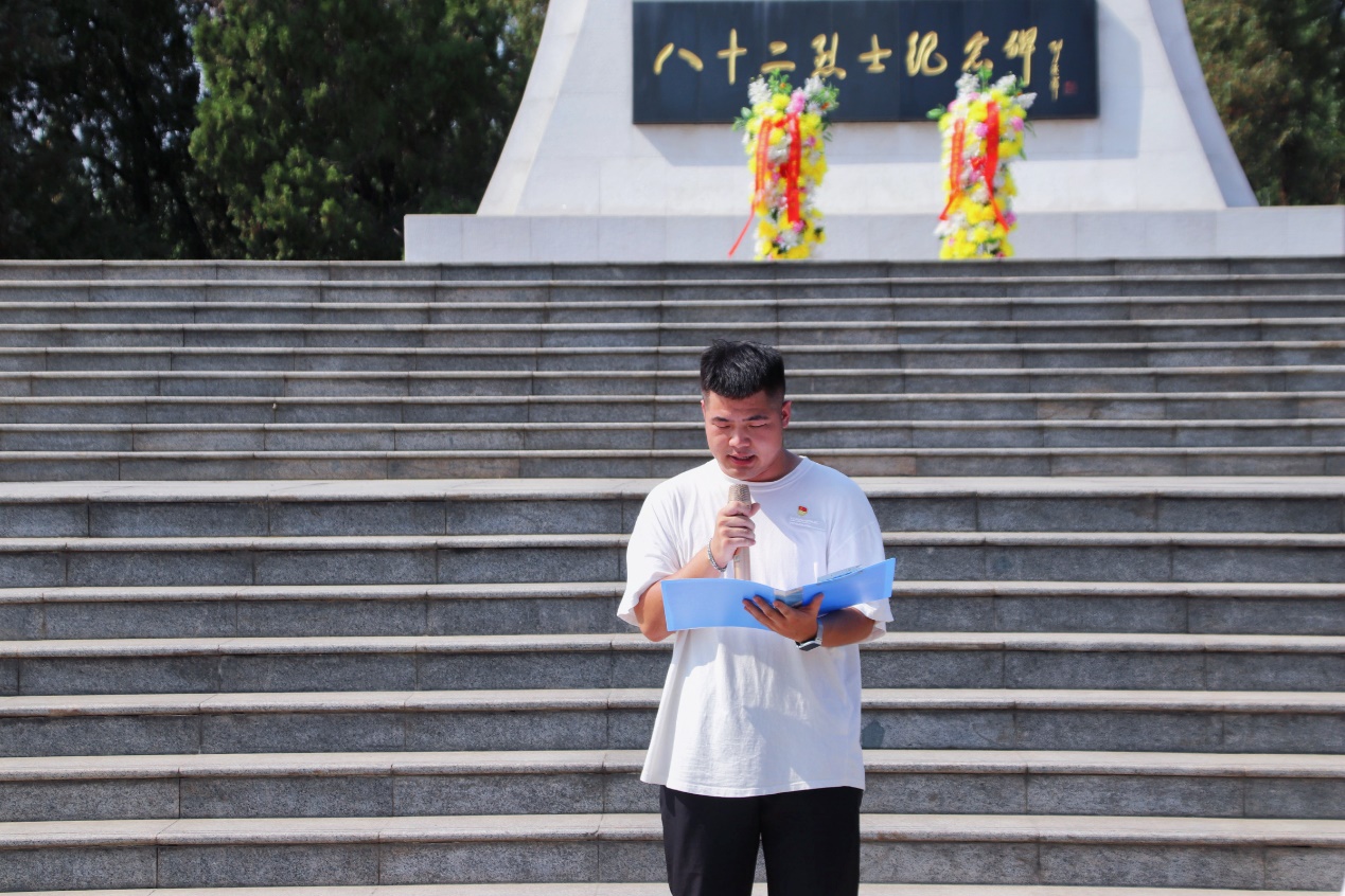 纪念碑前,全体党员胸佩党徽,聆听党员代表重温入党志愿,回顾入党时的难忘经历和坚定决心。院长张卫平、纪委委员李星彤为今年新发展党员挂身份牌,别上党徽。党总支书记罗斌、院长张卫平向部分老党员赠送政治生日贺卡。在学生第二党支部书记袁飞带领下,全体党员面对党旗庄严宣誓,以实际行动践行“四重四亮”。党总支书记罗斌指出,党员同志要继承先烈遗志,弘扬民族精神,把老一辈无产阶级革命家开创的事业薪火相传,发扬光大,要充分发挥党员的先锋模范作用,锐意进取、改革创新、团结奋斗、勇毅前行。随后全体党员瞻仰了刘老庄八十二烈士纪念馆。