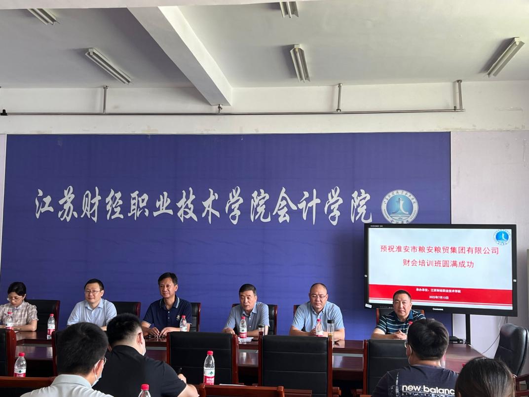 7月13日上午9:20分,为期10天的淮安市粮安粮贸集团有限公司财务培训班在江苏财经职业技术学院会计学院顺利开班。参与本次培训班开幕仪式的嘉宾有:淮安市粮安粮贸集团有限公司范总、刘总、殷主任,江苏财经职业技术学院粮食与食品药品学院田林双院长,会计学院张卫平院长。
