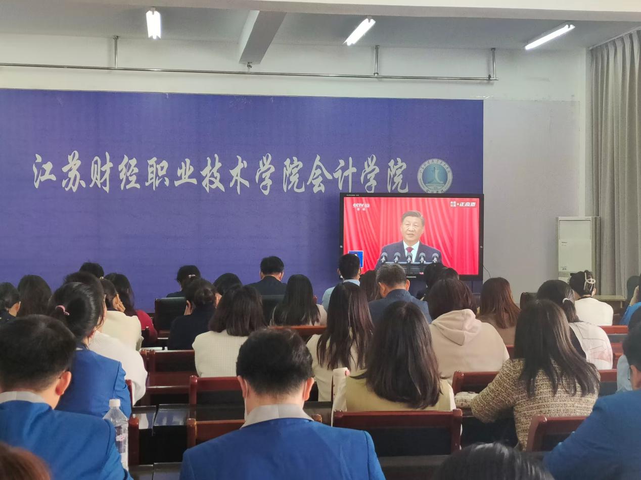升旗仪式结束后,会计学院学生第一、第二学生党支部又组织会计学院学生党员、入党积极分子、学生群众在线观看党的二十大开幕会。