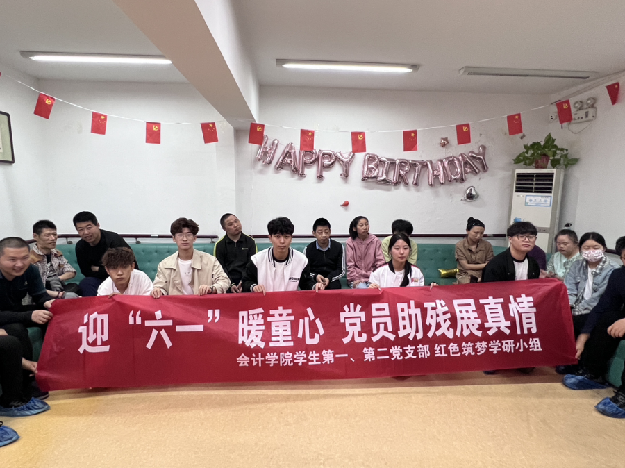 5月28日,在“六一”国际儿童节即将到来之际,会计学院学生第一、第二党支部“红色筑梦”学研小组的学生党员带领23数会1班的同学们,带着爱心物资,走进淮安市清江浦区残疾人托养中心开展“迎六一暖童心,党员助残展真情”关爱儿童活动。