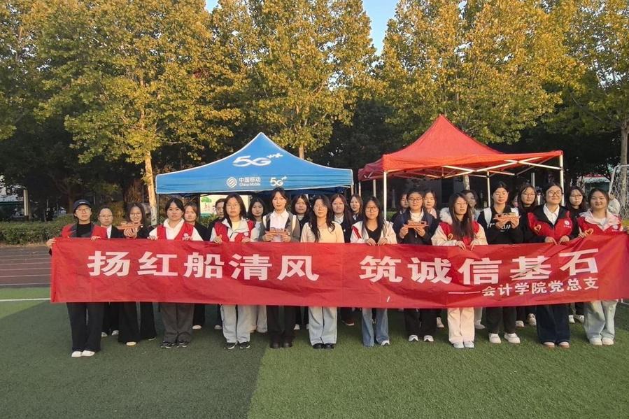 红船模型拼接竞速、廉洁知识障碍赛……这场别开生面的素质拓展活动让廉洁教育“活”了起来。会计学院党总支于2025年11月5日在校西操场成功举办“诚信红船”廉洁主题素质拓展活动,将“红船精神”与诚信教育相融合,通过沉浸式体验引导学生在实践中领悟廉洁内涵。