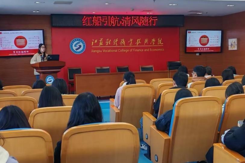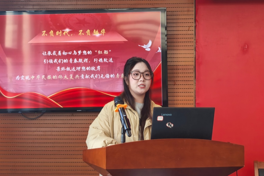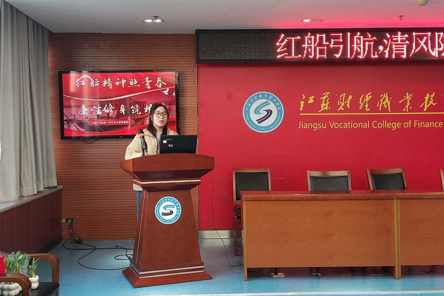 “红船精神照青春,廉洁修身筑根基”——学生党员郑雅茜的主题宣讲拉开了活动帷幕。她从红船所承载的开创、奋斗、奉献等精神出发,阐述了这些精神与当代青年廉洁自律的内在联系。郑雅茜结合会计专业未来职业特性,强调恪守会计准则与廉洁底线的重要性。她呼吁同学们“扣好职业生涯的第一粒扣子”,让红色基因成为青春远航的动力,让廉洁修养成为青春飞扬的底色。