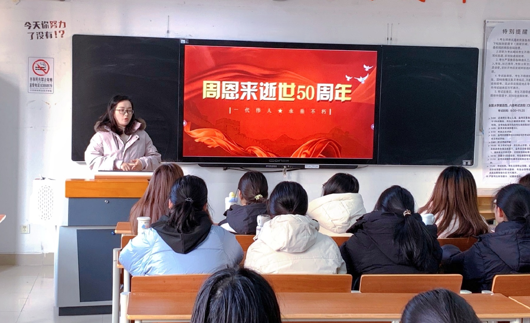 随后,班级团支部举行主题分享会,同学们深情讲述了周恩来总理少年时期“为中华之崛起而读书”的励志故事,结合自身学习生活,畅谈新时代青年的责任与理想。班主任在总结讲话中指出,周总理的一生是中国共产党人不忘初心、牢记使命的生动缩影,其崇高品格与公仆情怀是全体同学终身学习的典范。她勉励大家要将缅怀之情化为报国之志,勤学修德,锤炼本领,将个人理想融入国家发展伟业。