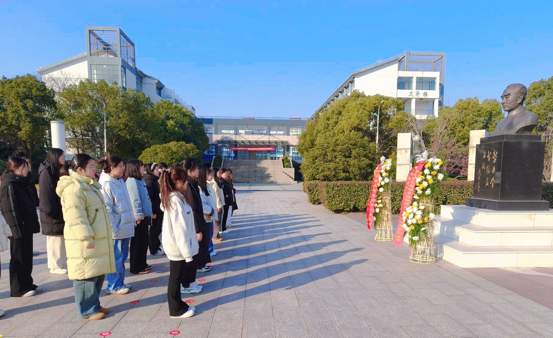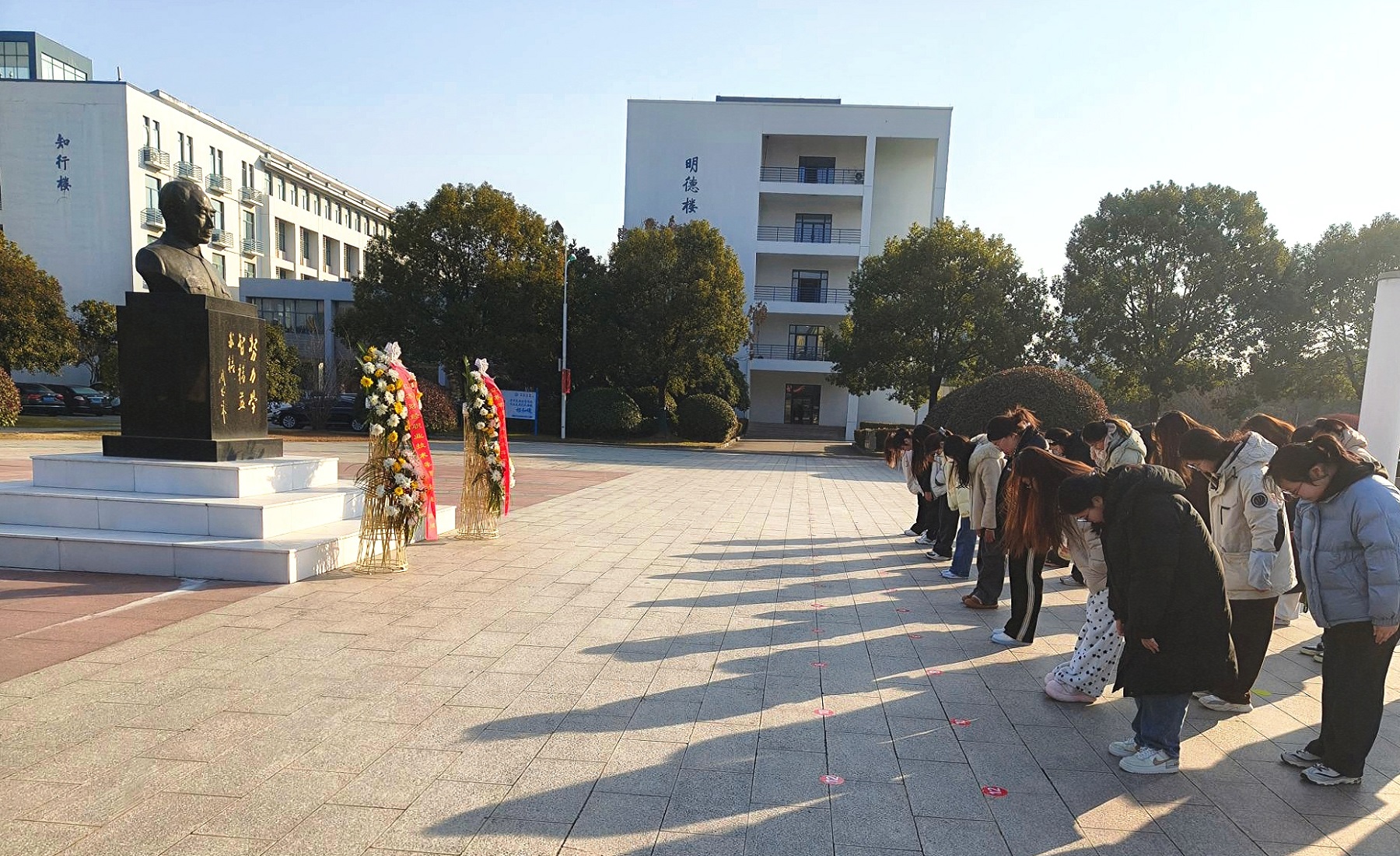 活动在庄严肃穆的氛围中开始。师生列队肃立于学校翔宇文化广场上的周恩来铜像前。大家神情庄重,向总理铜像深深鞠躬并默哀一分钟,以无声的敬意寄托无限的哀思。