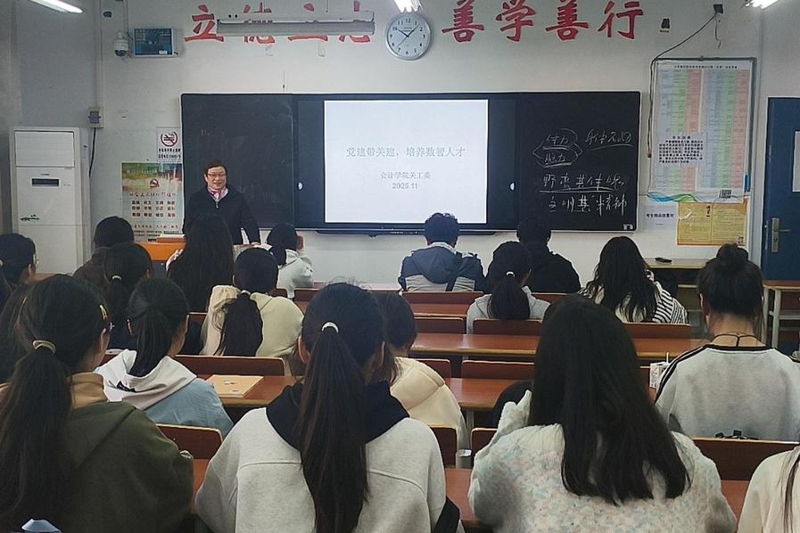 为增强同学们对数智化时代的了解,培养复合型人才,11月6日下午,会计学院关工委邀请学校关工委老师张苏红举行“党建带关建,培养数智人才”专题讲座。2025级150余名新生代表参加了讲座。