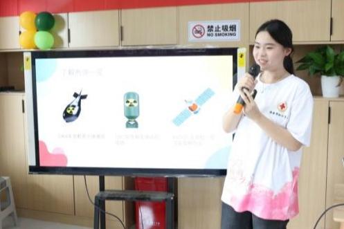 活动在庄严热烈的氛围中拉开帷幕。主题横幅与红色展板构筑起生动的学习空间,学生党员张颖首先带领孩子们观看党史展板,通过图文并茂的讲解,将革命精神具象化呈现。在红色课堂环节,陈艳艳同志向孩子们发放特编红色绘本,结合淮安本地英雄事迹,讲述"两弹一星"元勋的奋斗故事,引导孩子们理解红色基因的时代内涵。