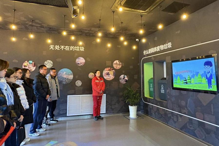 活动伊始,企业负责人围绕公司发展历程、固废处理规模及资源化利用成效作详细介绍,重点讲解了“无害化处理 — 资源化回收 — 清洁能源转化”的闭环处置模式。在技术人员的带领下,党员师生依次走进环保科普展厅、焚烧发电主控室及智能分拣中心。车间内,自动化分拣设备精准分离可回收物与有害垃圾,传送带有序输送固废至焚烧炉;中控室里,技术人员通过数字化监控系统实时调控焚烧温度、烟气净化等关键指标,屏幕上实时更新的污染物排放数据,直观展现了“零污染、全利用”的处理成效。