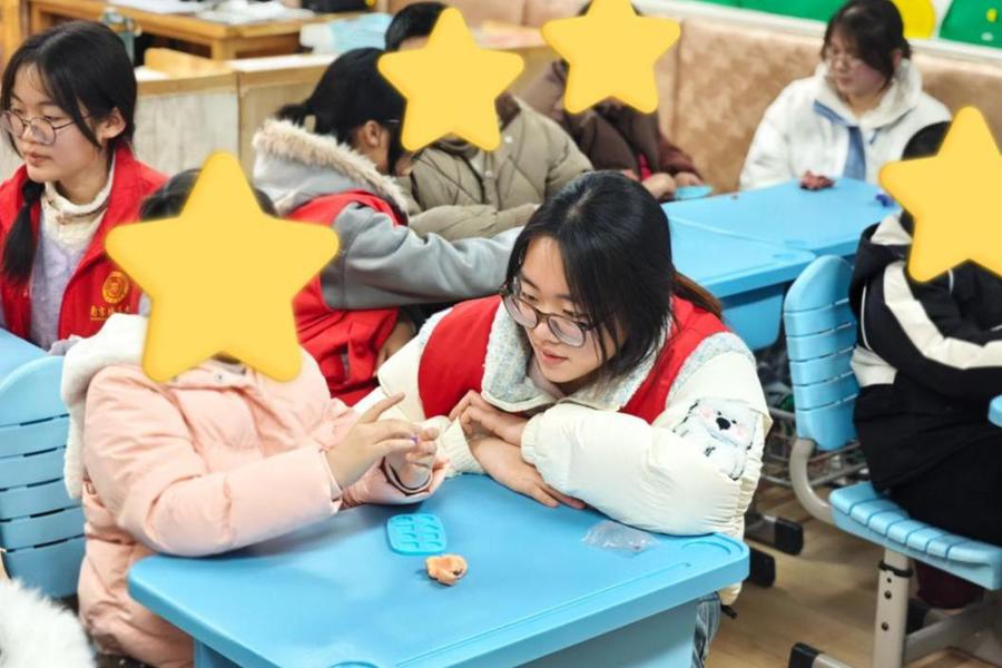 在“趣味拼图”环节,志愿者不做“指导者”,只做“玩伴”。他们陪着孩子慢慢拼接,不催促、多鼓励,用掌声和称赞给予孩子安全感。随后的“黏土地球仪DIY”中,志愿者协助固定造型,鼓励孩子们大胆创作。看着孩子们专注的眼神和完成作品后的笑容,志愿者们深刻体会到:对特殊儿童而言,最好的礼物不是昂贵的玩具,而是有人愿意停下脚步、放下浮躁的认真陪伴。
