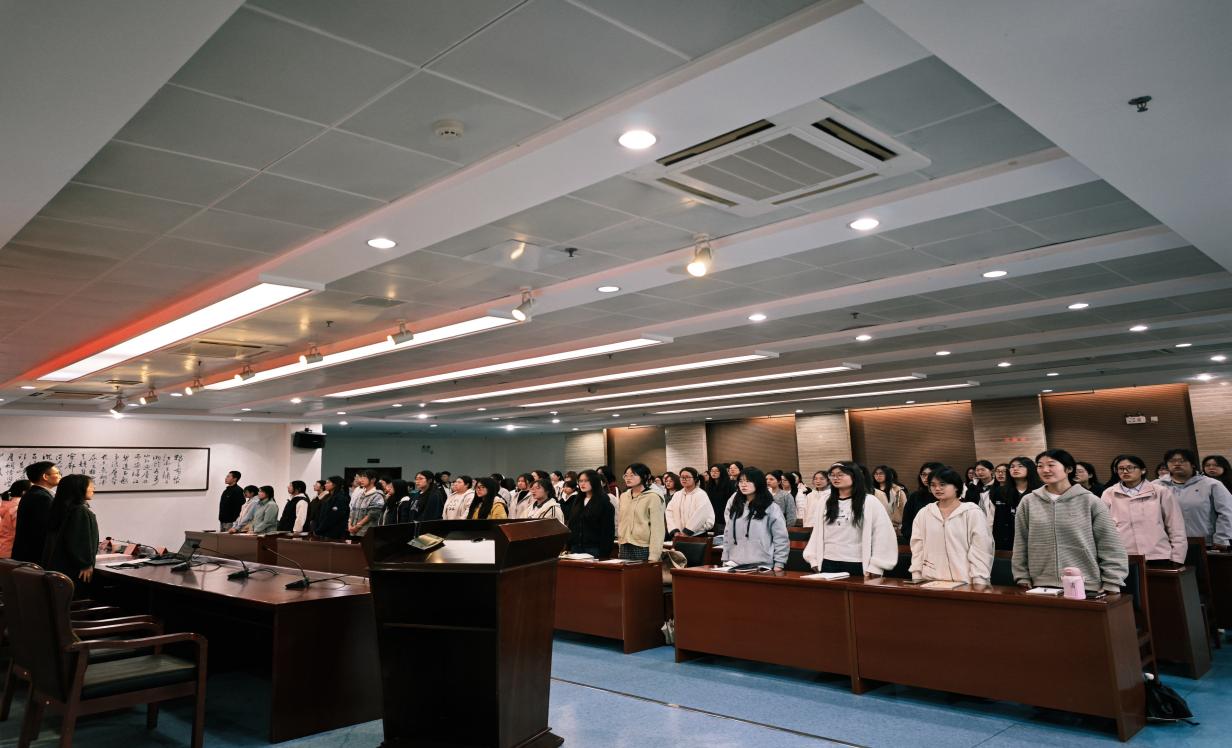 伴随着庄严激昂的国歌声,开班仪式正式拉开帷幕。全体参会人员整齐肃立,雄壮的旋律在报告厅内久久回荡,既彰显了全体学员蓬勃向上的精神风貌和矢志不渝跟党走的初心信念,也营造出庄重热烈、催人奋进的活动氛围。