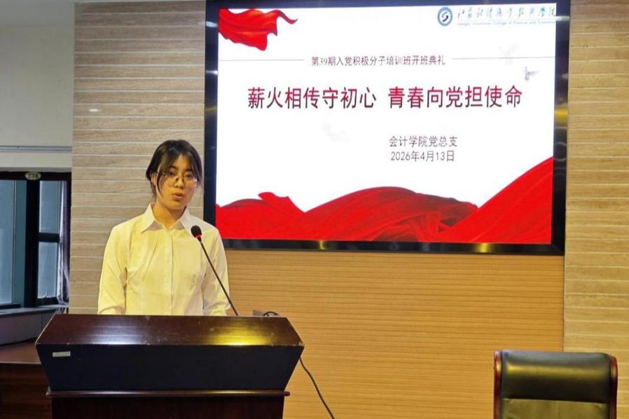 为强化入党积极分子思想武装,筑牢信仰之基,夯实入党后备力量建设,4月13日,会计学院党总支于图书馆110会议室举行第39期入党积极分子培训开班仪式。会计学院党总支书记罗斌、学生第一党支部书记尚凌凤、学生第二党支部书记张凯利及全体学员共同参与,典礼由张凯利主持。