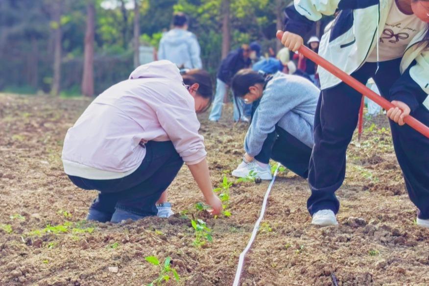 经过2小时的辛勤劳作,同学们看着自己的劳动成果,学生戈畅感慨:“从课本数字到田间实践,真正体会到‘一粥一饭当思来之不易’的含义。后期我会主动承担养护责任,见证它们开花结果。”